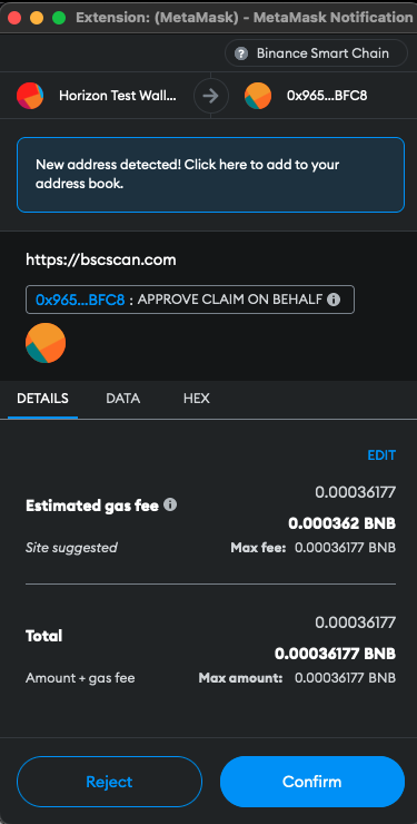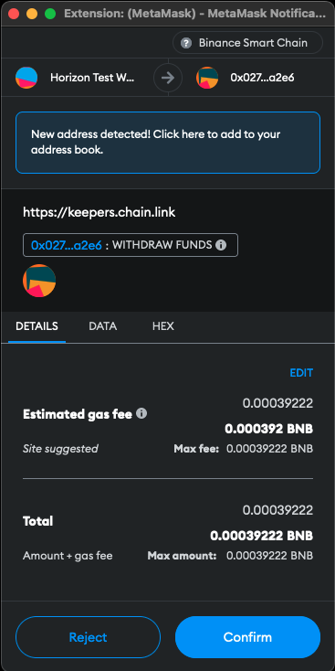 If you are buying LINK tokens on a CEX, such as Binance, make sure you are withdrawing the LINK onto the BNB Chain (BEP-20 token) and not withdrawing onto the Ethereum chain (ERC-20 token). Since the Chainlink Automation upkeep is operating on the BNB Chain for Horizon Protocol, it must be a BEP-20 LINK token.