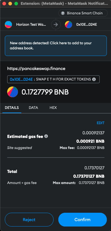 Here are the transaction fees. Click confirm (off screen to the bottom) to finish the Swap.