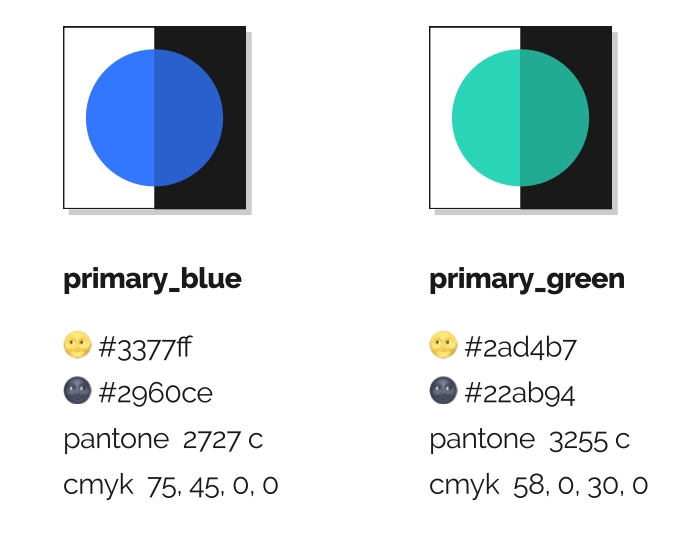 Primary-blue and primary green are both primary colors dark-grey is text color used in Logotype.
