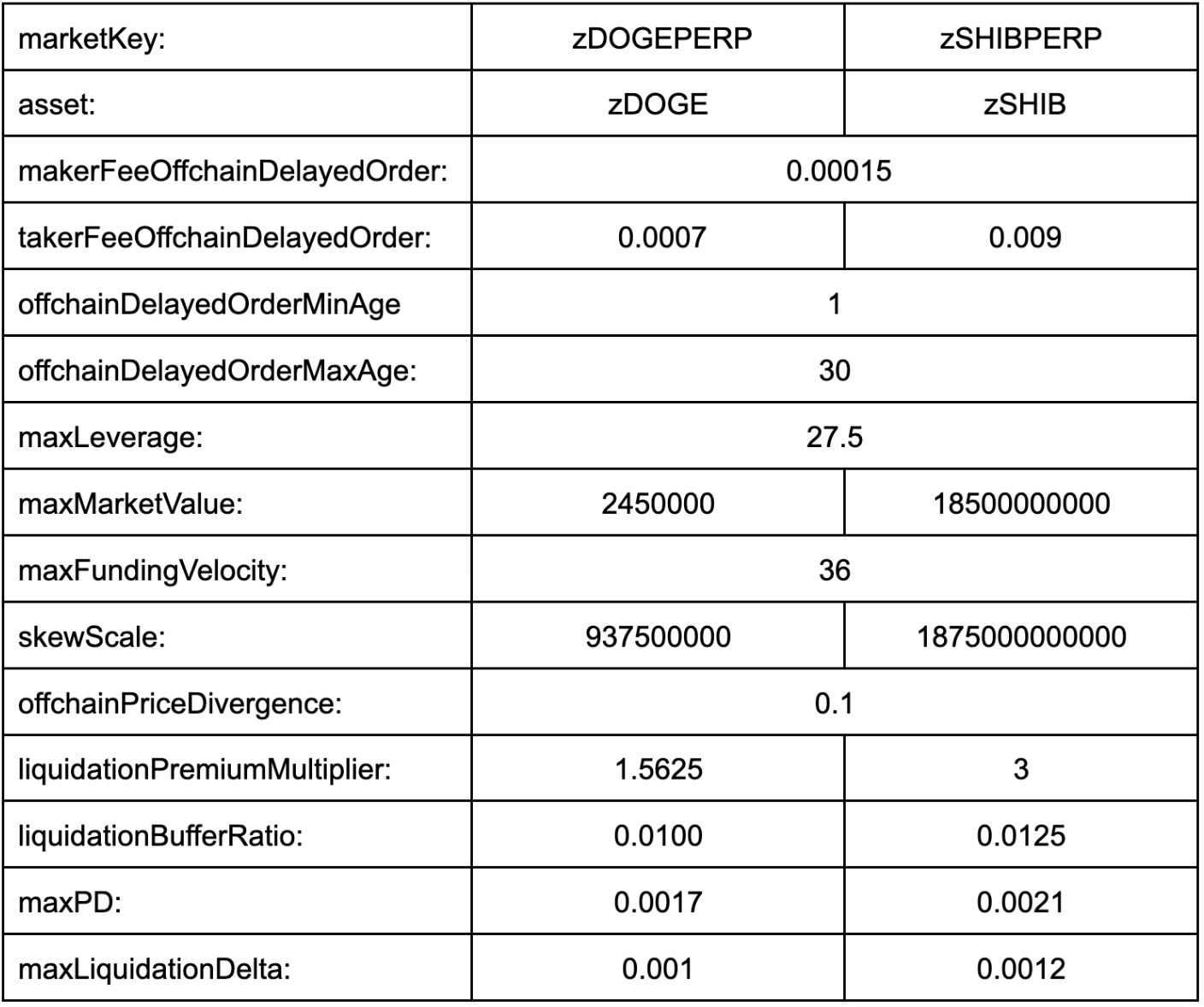 Add Dogecoin (DOGE) and Shiba Inu (SHIB) on Horizon Futures and set the system parameters as below: