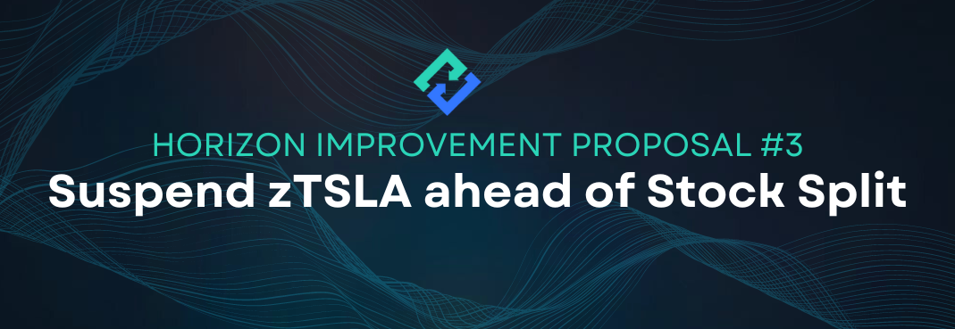 Tesla has [announced](https://www.sec.gov/Archives/edgar/data/1318605/000156459022028207/tsla-ex991_6.htm) a 3-for-1 stock split and the trading with the new stock-split adjusted price will begin on August 25th EDT. The stock split adjusted price will be significantly lower than the pre-adjusted price and will have a direct impact on any user who holds the zTSLA zAsset on Horizon Protocol since oracles currently do not have the information or functions to allow for automated stock splits of the zAssets.