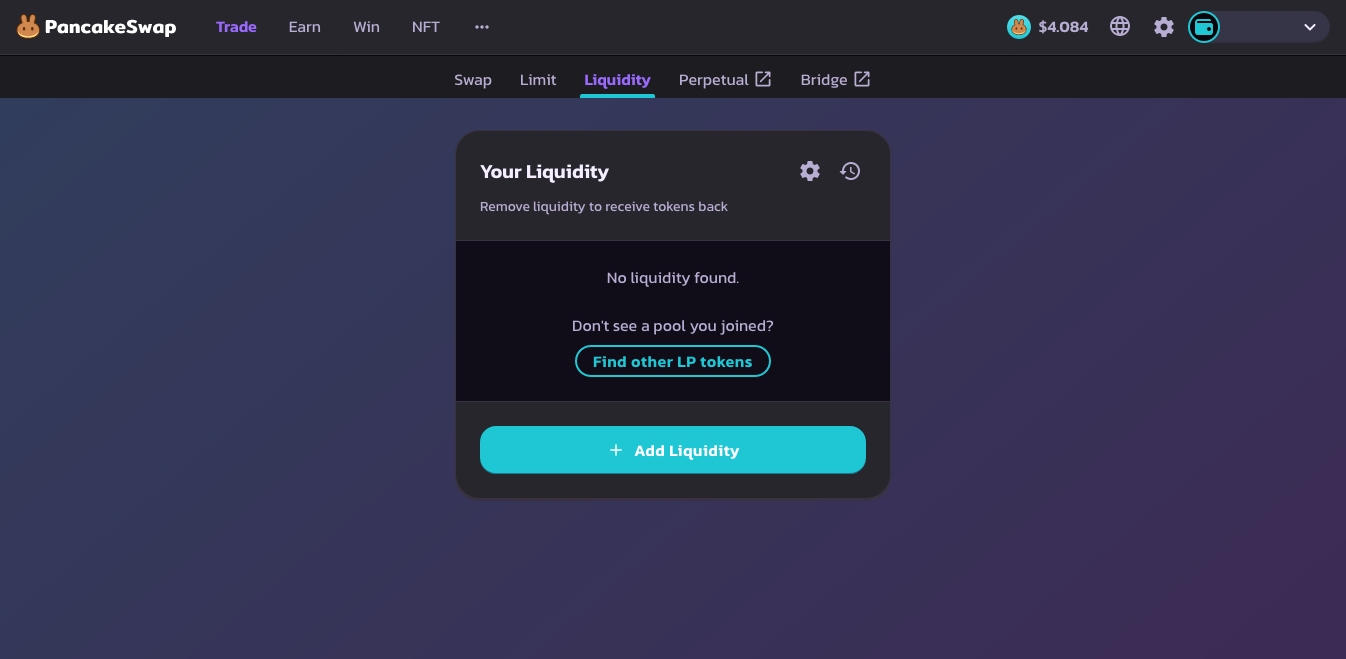If you already have HZN and BNB in your wallet, you can now deposit them to add liquidity by clicking "Add Liquidity". The box will expand and show you more options.