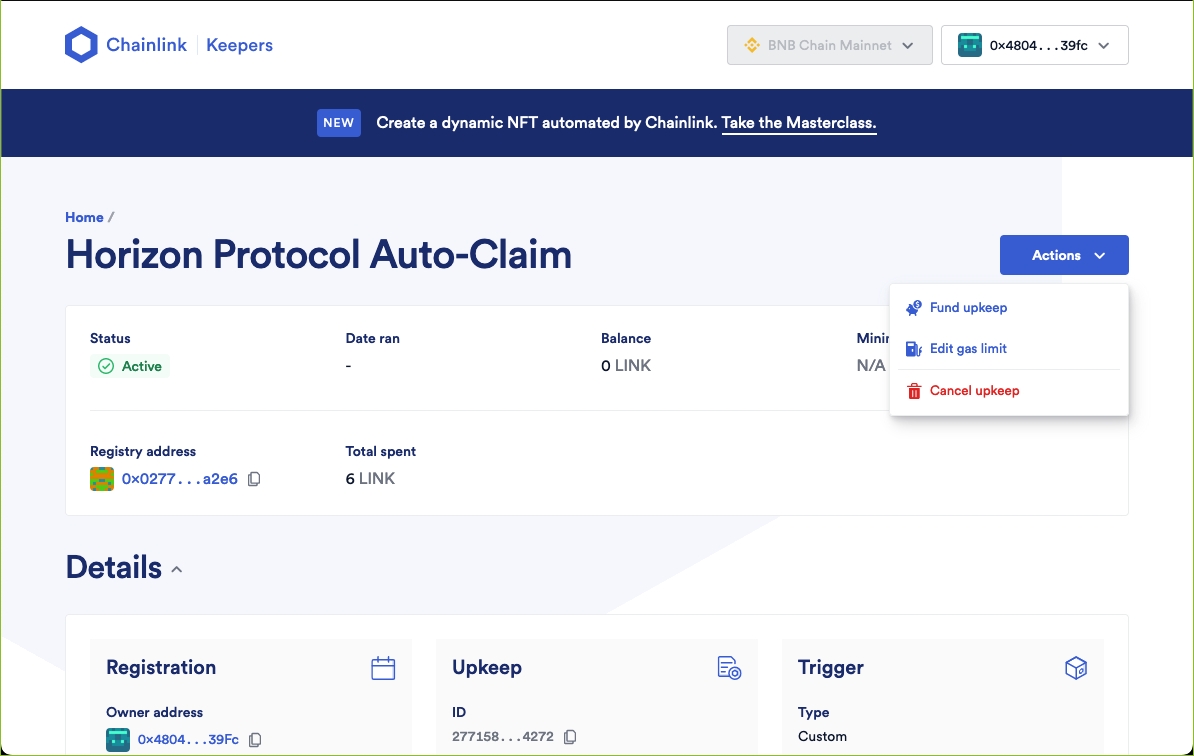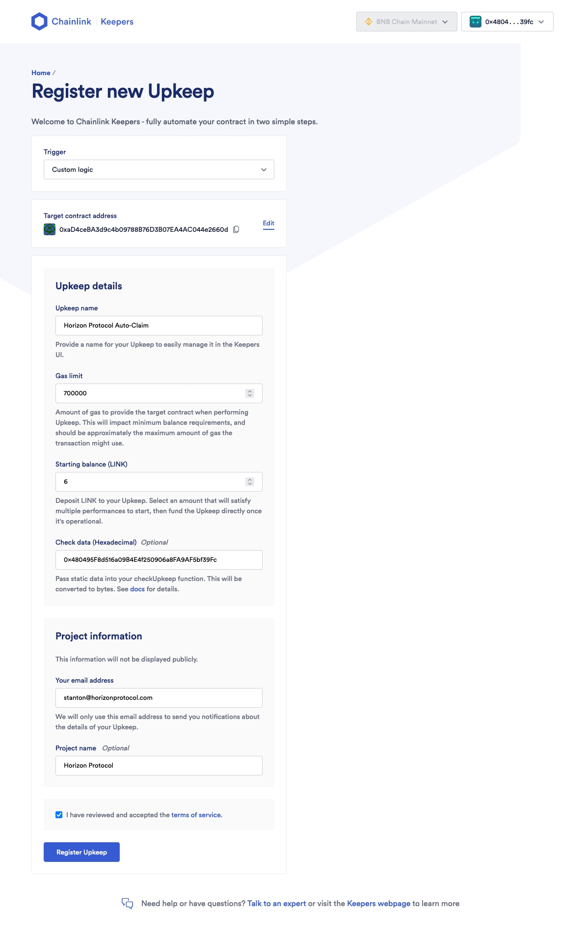 Upkeep Name: Horizon Protocol Auto-Claim (limited length, you can choose whatever name)