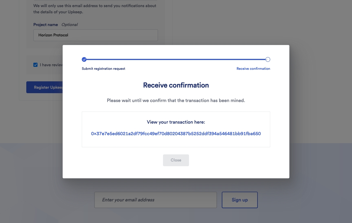We will now register your upkeep: