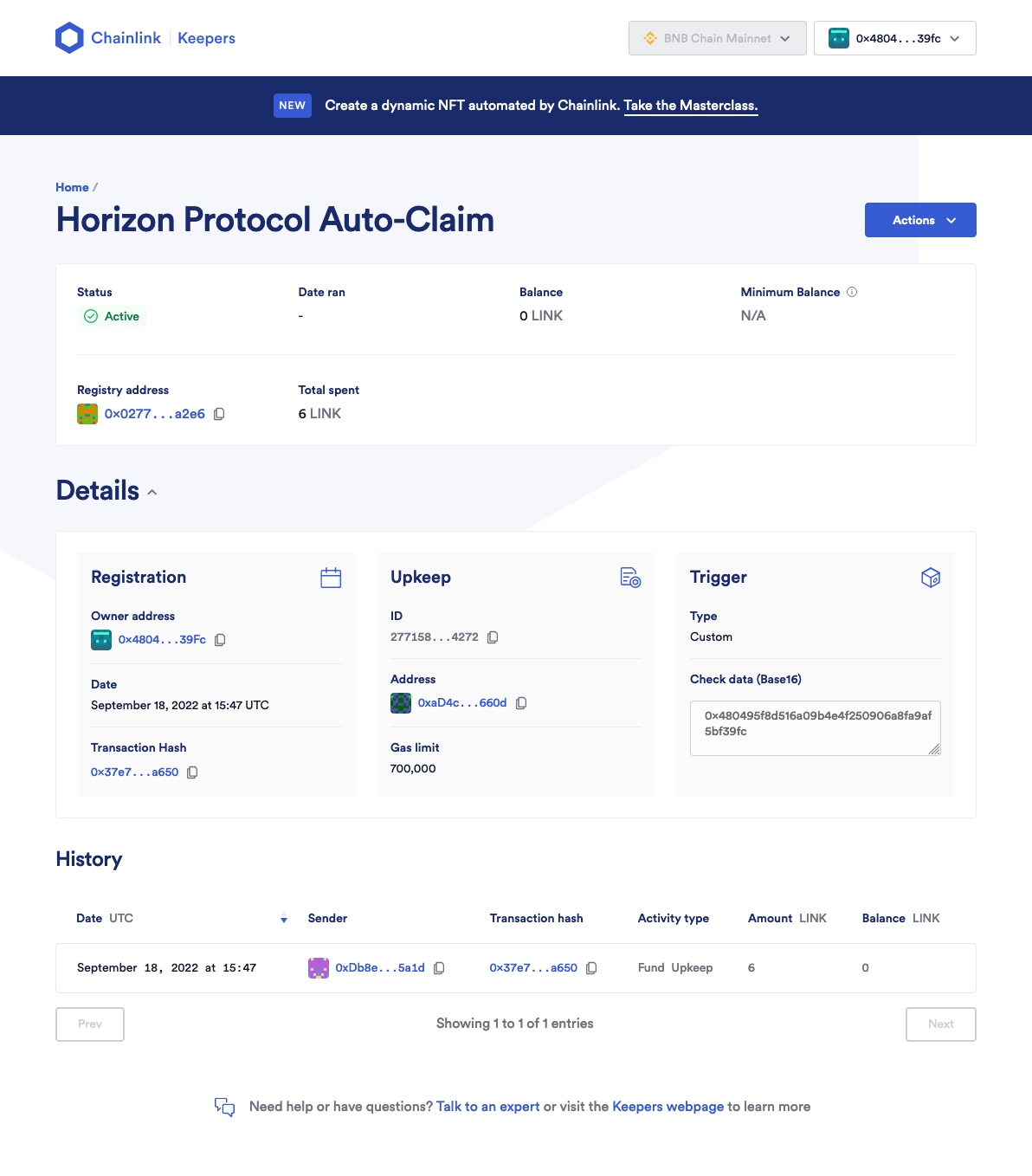 The above Upkeep transaction can also be found here: