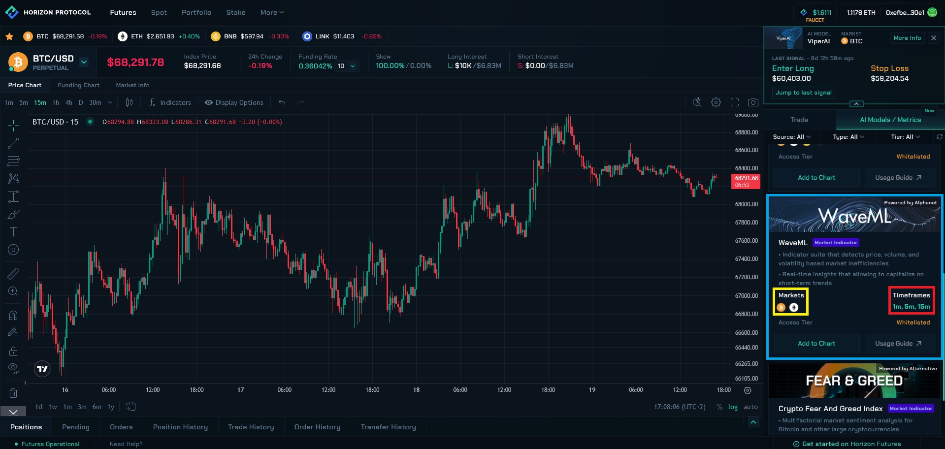 Adding and Removing the WaveML Indicator: To enable the WaveML indicator, navigate to the “AI Models” tab, scroll down to “WaveML,” and click on “Add to Chart.” To remove the indicator, simply click the small “X” next to the indicator's name located below your main chart.