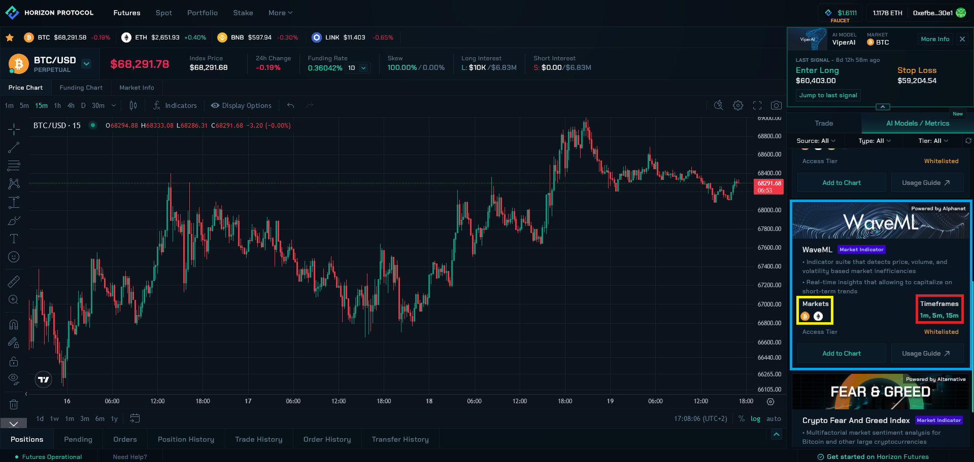 To enable the WaveML indicator, navigate to the “AI Models” tab, scroll down to “WaveML,” and click on “Add to Chart.”\