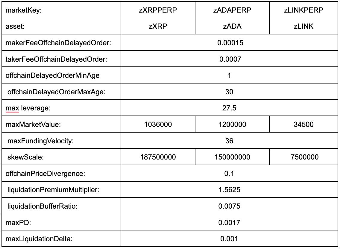 Add Ripple (XRP), Cardano (ADA), and Chainlink (LINK) markets on Horizon Futures and set the system parameters as below: