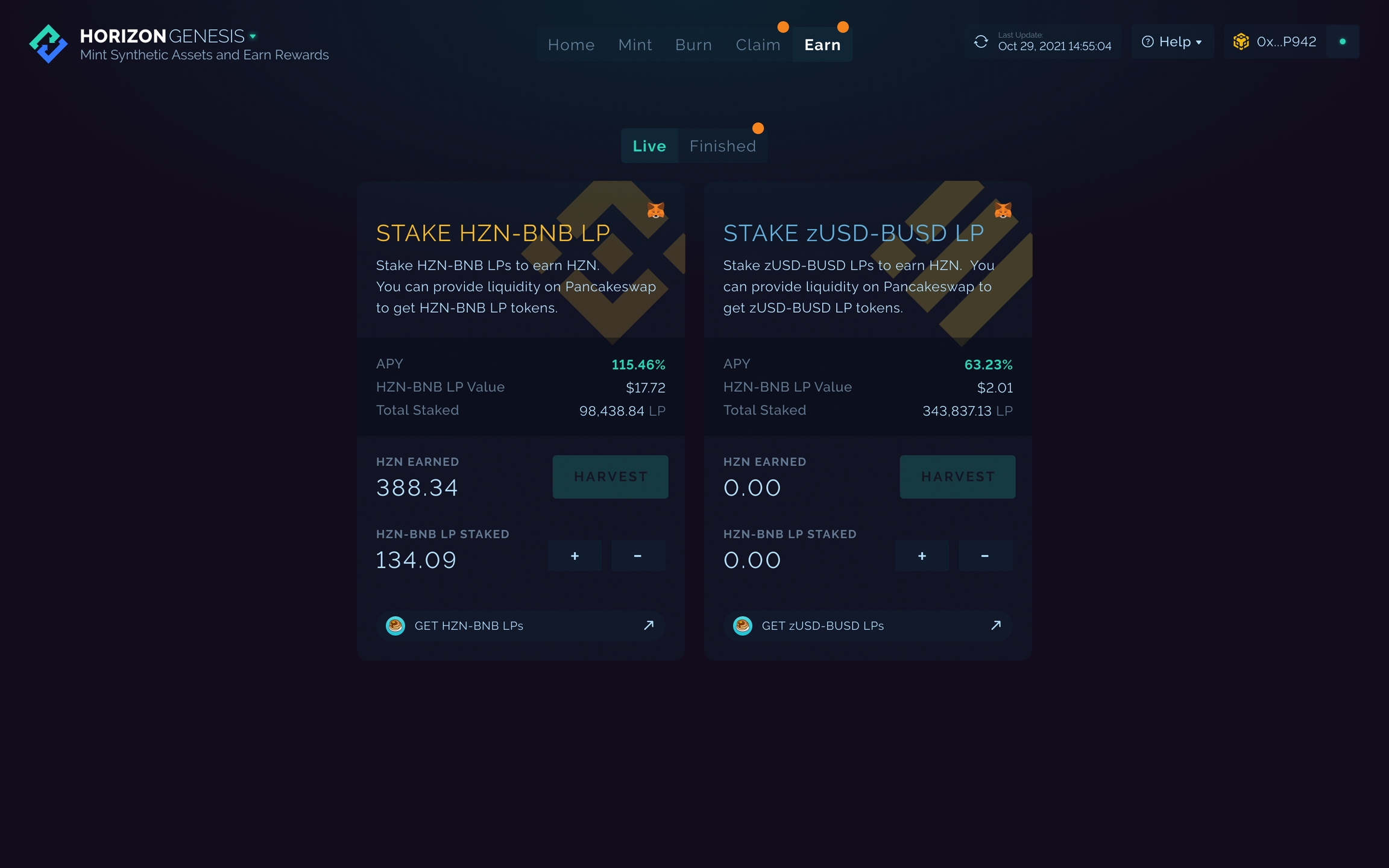 STAKE ZUSD-BUSD LP Stake ZUSD-BUSD LP (provide liquidity on PancakeSwap) to earn HZN.