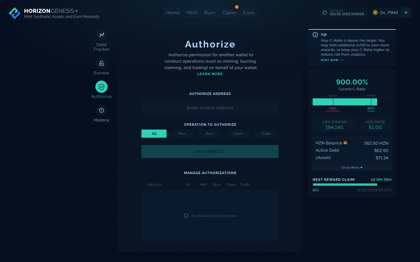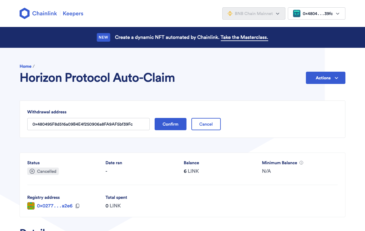 Lưu ý rằng việc thiết lập Chainlink Automation liên kết cho Horizon Genesis sẽ giúp tự động nhận thưởng, nhưng nó không tự động Burn để thay đổi tỷ lệ C-Ratio của bạn.